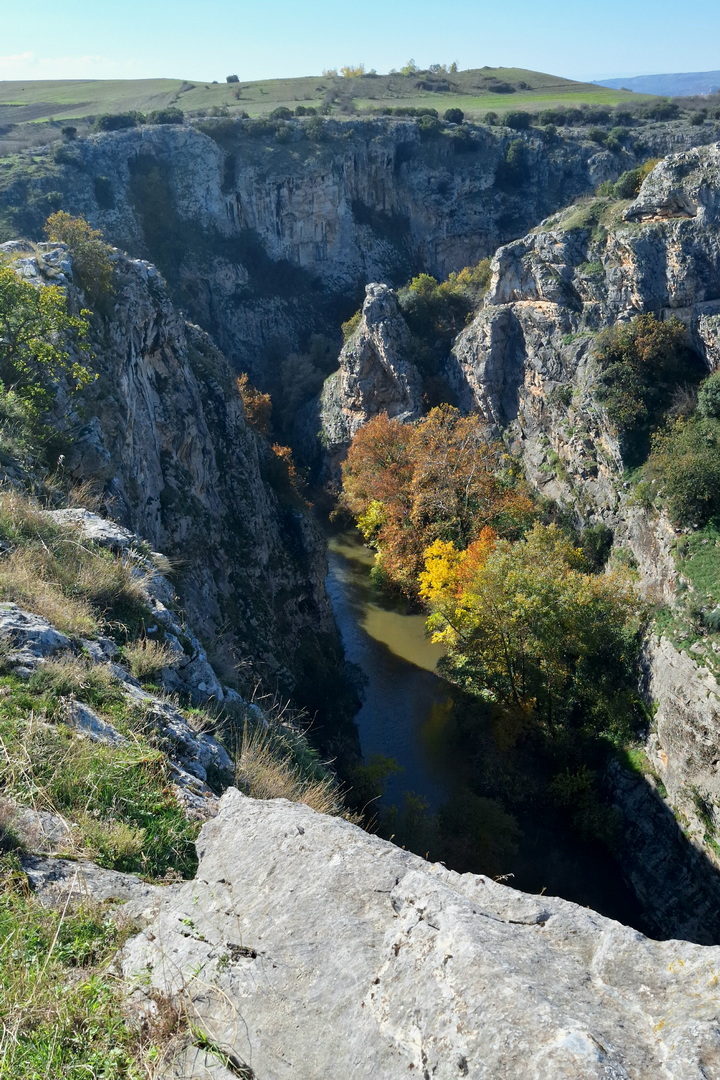 Rossz idő esetén az Alistrati-barlang meglátogatását kínáljuk túráinkon, de ha közben mégis kijavul az idő az Aggitis-folyó kanyonját is bejárjuk. Ez a kanyon kb. 15 km hosszan kanyarog egy meredek, monumentális sziklaszorosban. Az évezredek alatt bevágódott folyó környéke barlangokról, sziklarajzokról és különleges élővilágáról híres. A kanyon minden évszakban látványos kihagyhatatlan túrahelyszín. Ezeken a 2025-ös túránkon készült képeken a kanyon őszi arca látható.